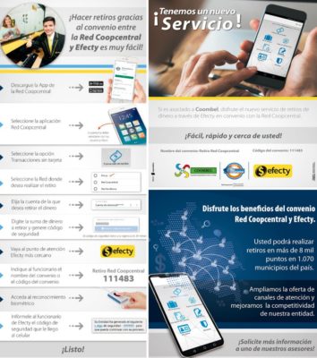 Si es asociado a Coombel, disfrute del nuevo servicio de retiros de dinero a través de Efecty en convenio con la Red Coopecentral. Usted podrá realizar retiros en más de 8 mil puntos en 1007 municipios del país.